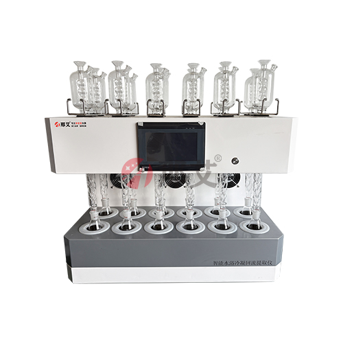 實驗室為了加快反應速度很慢或難以進行的化學反應,常常采用回流與冷凝裝置,保證反應進行完全,并防止反應物、產物或溶劑揮發逸出體系。那艾智能水浴冷凝回流提取儀(專利編號:CN220496410U)采用智能恒溫水浴替代傳統水浴鍋,標配12個加熱單元,滿足大樣品量的需求;內置四個測溫點和耐高溫循環水泵來保證水浴溫控均勻;一鍵啟動,自動雙區控溫,且缺水自動補水,可自動排水,避免長時間菌類滋生。適用于食品及食品包裝物部分項目的檢測前處理,中藥科研單位、加工企業、生產企業等樣品浸出物、含量測定、理化鑒別等實驗。